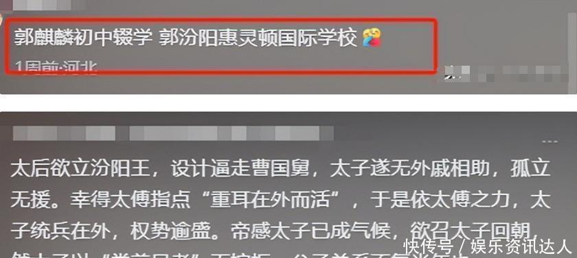 按常理,长子通常被期待继承家业,更别提郭麒麟初中就辍学随父学相声这种事儿了,